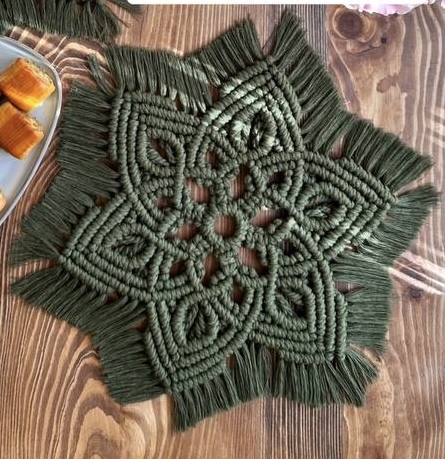 زیر قابلمه ای مکرومه رنگ سبز ابعاد ۳۰ سانت رنگ‌دلخواه شما کد ۷۰۰