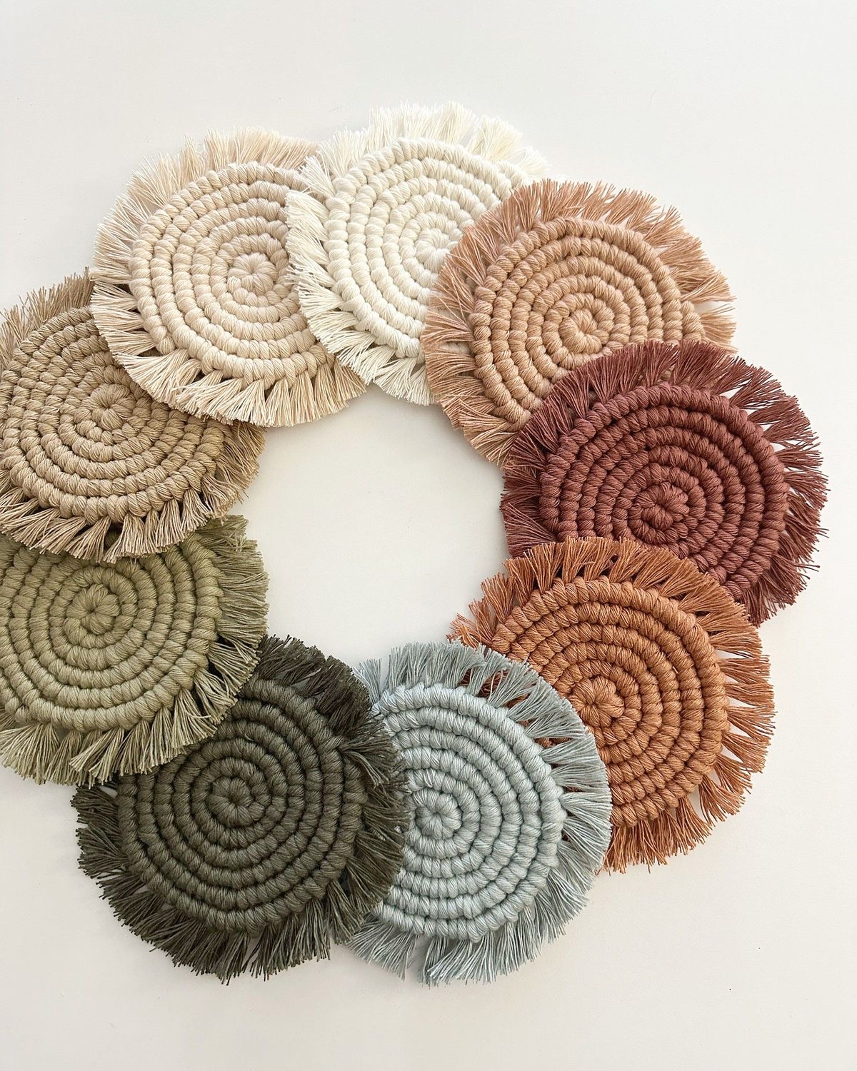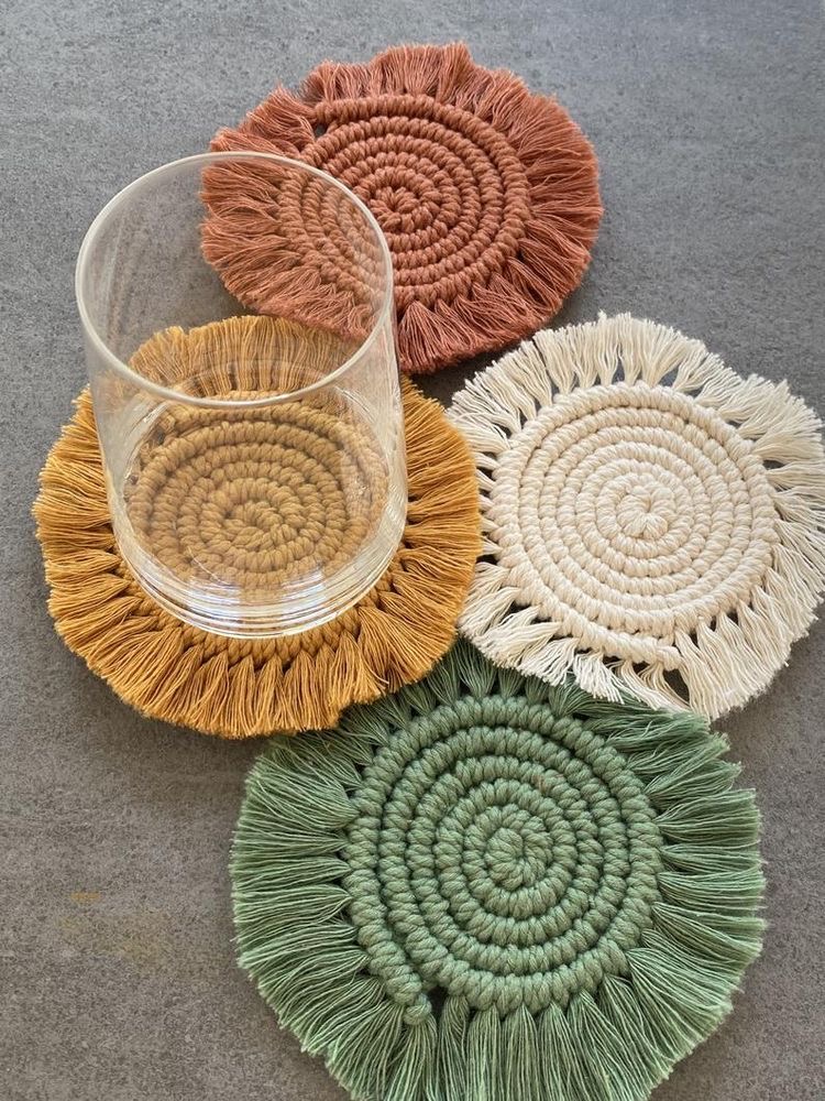 زیر لیوانی مکرومه طرح گرد رنگ دلخواه شما کد سفارش۲۵۷۷ ابعاد ۱۰