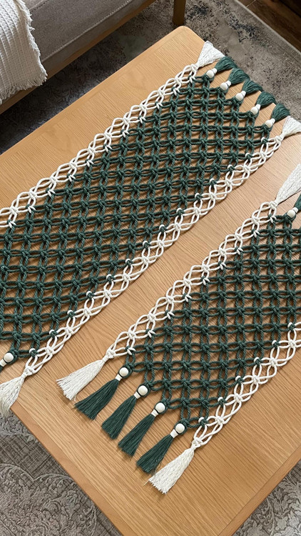 رانر مکرومه طرح مینیمال رنگ دلخواه شما دورنگ سیز و شیری کد۱۳۶۶ابعاد ۸۰ در ۴۰