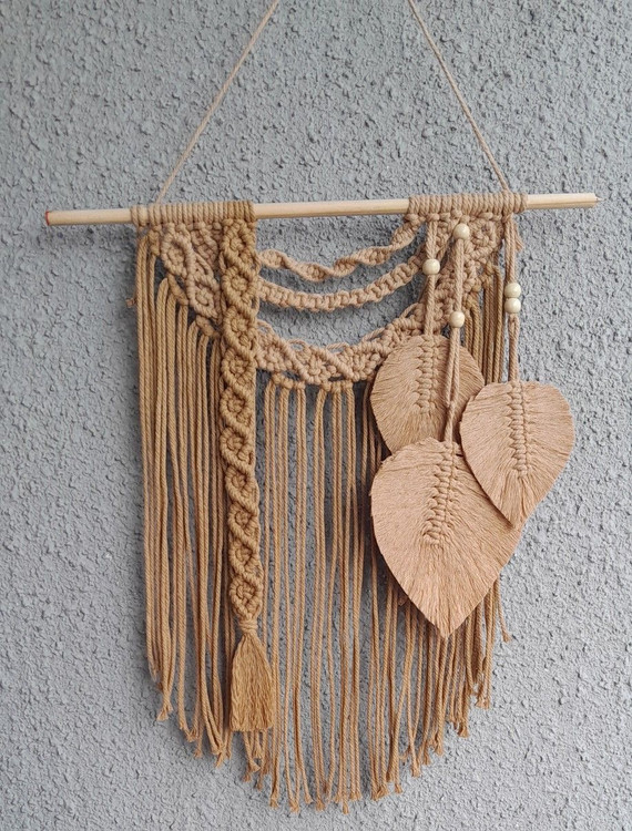 دیوارکوب مکرومه طرح برگ رنگ نسکافه ای ابعاد ۷۰ سانت رنگ دلخواه شما کد۱۳۵۷