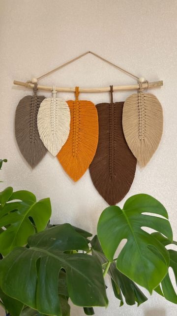 دیوارکوب برگ مکرومه ترکیب رنگ پاییزی ابعاد ۷۰ سانت ۵ برگ رنگ‌دلخواه شما کد ۴۶۸۵۵