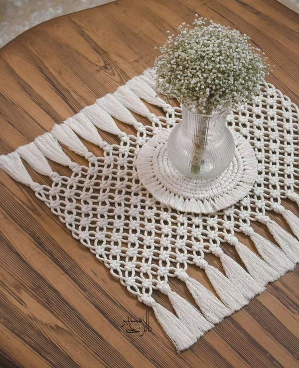 رومیزی مکرومه طرح مستطیل رنگ شیر ابعاد ۸۰ در ۵۰ رنگدلخواه شما کد۲۳۴۵