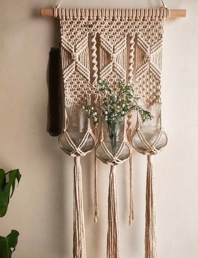 دیوارکوب مکرومه طرح گلدان رنگ شیر کد ۵۸۸۶ رنگ دلخواه شما ابعاد ۷۰ سانت