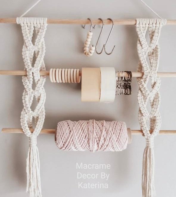 دیوارکوب مکرومه طرح اویز کاربردی رنگ شیری ابعاد ۶۰ سانت رنگ دلخواه شما