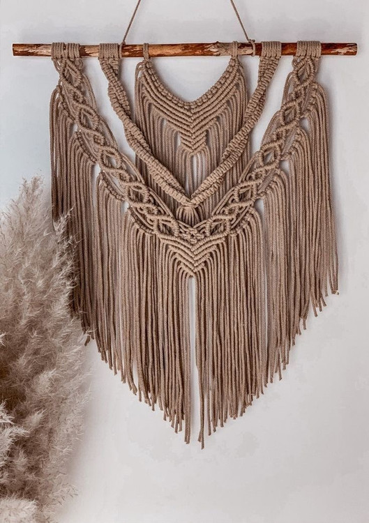 دیوارکوب مکرومه طرح پیچ رنگ نسکافه ای ابعاد ۱۰۰ سانت رنگ دلخواه شما