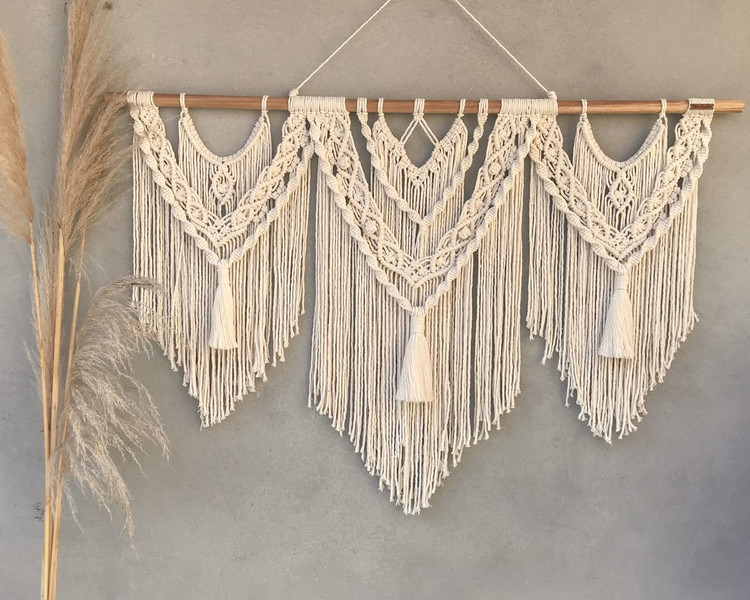 دیوارکوب مکرومه طرح پیچ رنگ شیری ابعاد ۱۸۰ سانت رنگ دلخاه شما کد ۹۰۰۷