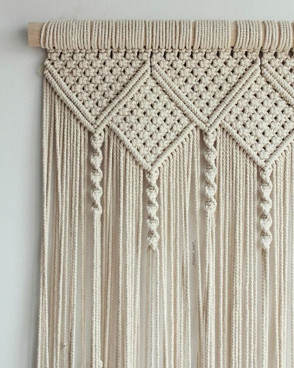 پرده مکرومه طرح لوزی رنگ شیری ابعاد قابل تغییر کد ۸۰۰ رنگ دلخواه شما