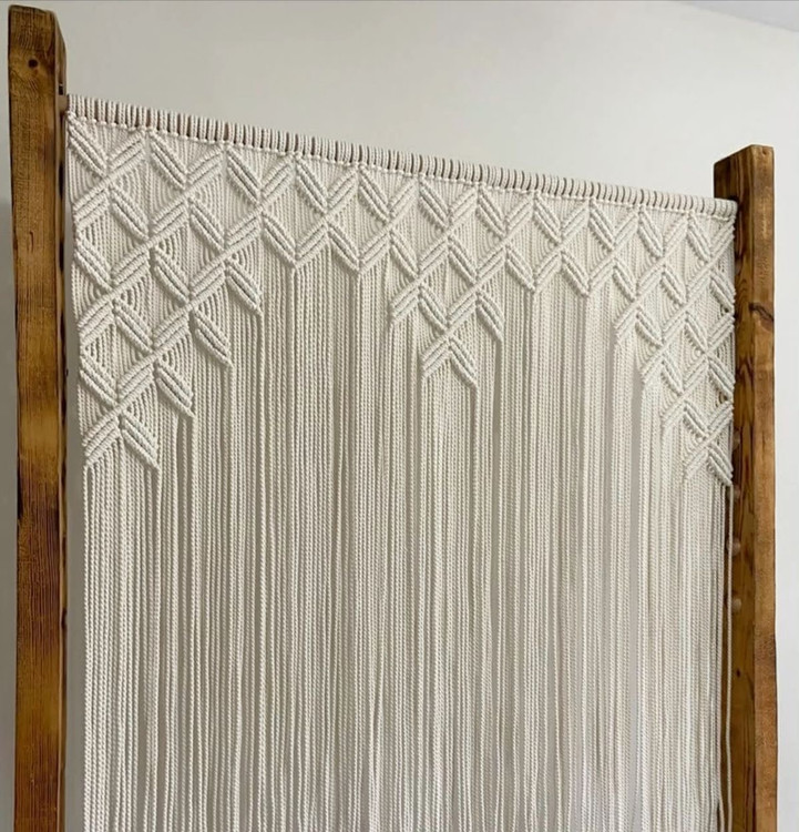 پرده مکرومه طرح مکرومه رنگ شیری ابعاد قابل تغییر رنگ دلخواه شما کد ۳۵۶