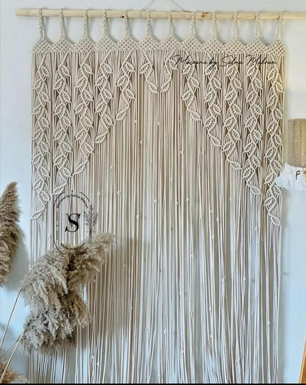 پرده مکرومه طرح جوانه حرکتی ابعاد قابل تغییر رنگ شیری رنگدلخواه شما کد سفارش۲۸۸۸