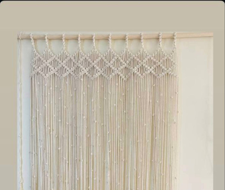 پرده مکرومه طرح اقتصادی رنگ شیری ابعاد قابل تغییر رنگ دلخواه شما کد۲۸۸