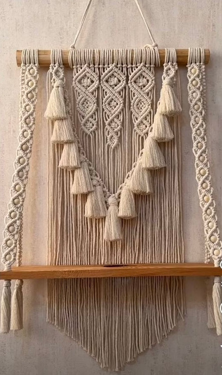 شلف مکرومه طرح منگوله دار یک طبقه رنگ شیری ابعاد ۷۰ سانت رنگ دلخواه شما کد۱۸۶