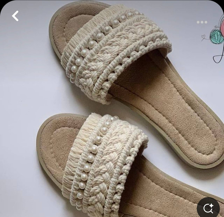 صندل مکرومه طرح بافت رنگ شیری مرواریدی رنگ دلخواه شما سایزبندی کد سفارش ۶۹۹
