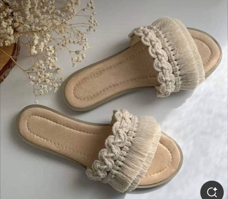 صندل مکرومه طرح بافت رنگ شیری سایزبندی رنگ دلخواه شما کد سفارش۴۳۵