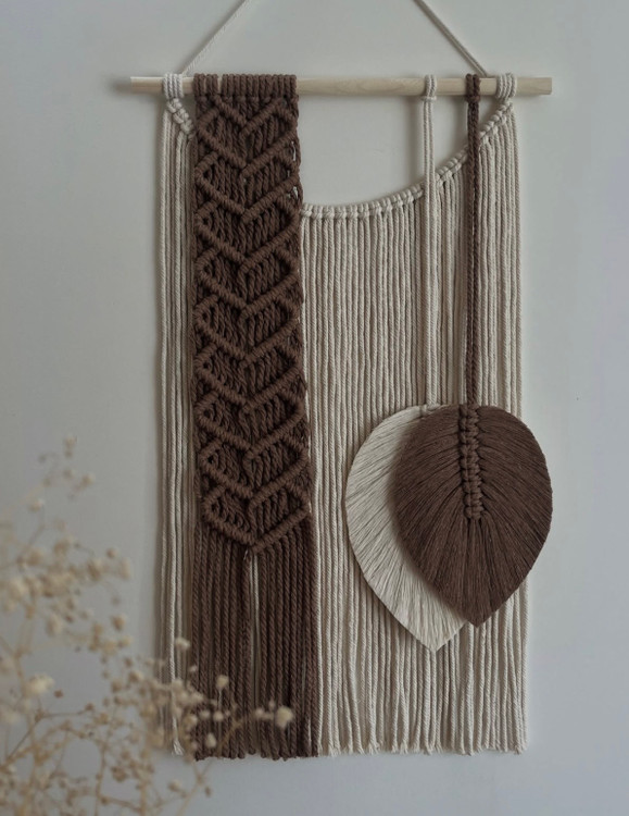 دیوارکوب مکرومه طرح جوانه ابعاد ۵۰ سانت رنگ شیری نسکافه ای رنگ پلخواه شما کد سفارش۵۷۸