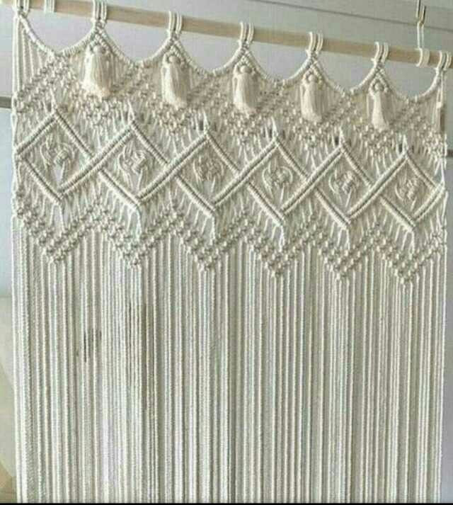 پرده مکرومه طرح لوزی منگوله دار رنگ‌شیری ابعاد قابل تغییر رنگ‌دلخواه شما کد سفازش۲۵۹