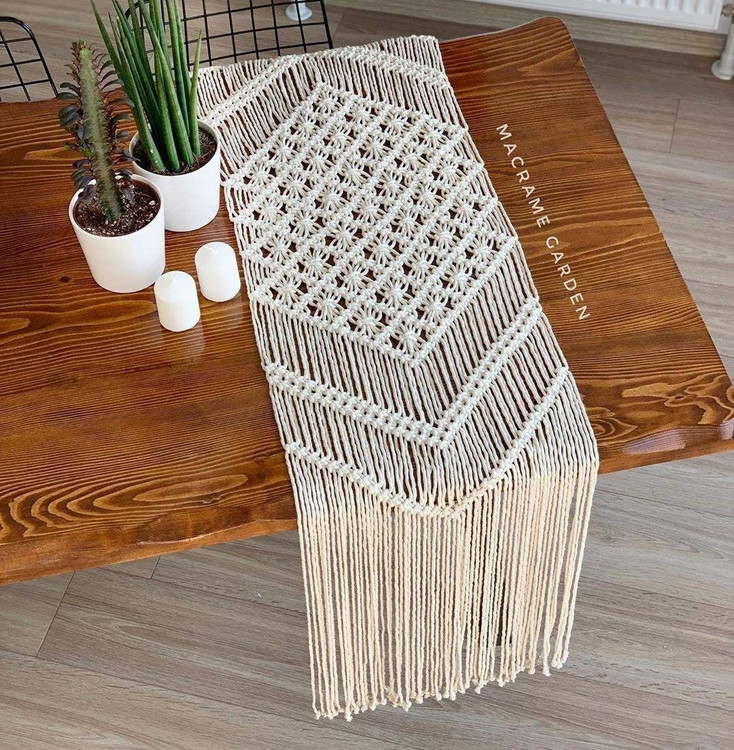 رانر مکرومه طرح لوزی رنگ شیری رنگ دلخواه شما ابعاد قابل تغییر کد سفارش۱۹۳