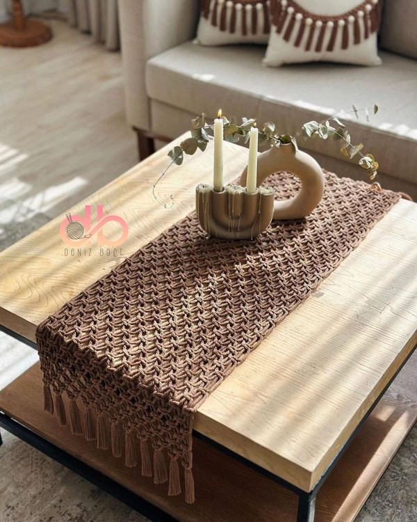 رانر مکرومه طرح مینیمال رنگنسکافه ای ابعاد ۱۰۰ سانت رنگ دلخواه قابل سفارش ابعاد قابل تغییر