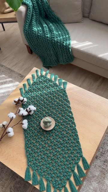رانر مکرومه طزح سه گوش منگوله دار رنگ سبز ابعاد ۱۰۰ سانت رنگ قابل تغییر ابعاد قابل تغییر