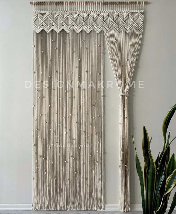 پرده مکرومه طرح لوزی رنگ شیری ابعاد قابل تغییر کد سفارش۴۸۹