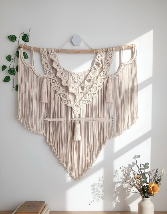 دیوارکوب مکرومه طرح بوهو رنگ شیری ایعاد ۱۲۰ کد سفارش ۱۳۴ رنگ دلخواه شما ابعاد قابل تغییر