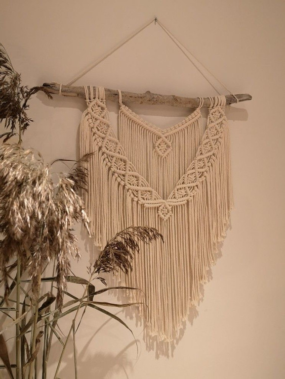 دیوارکوب مکرومه طرح لوزی ابعاد ۷۰ سانت رنگ شیری و قابل تغییرکد سفارش۱۷۷