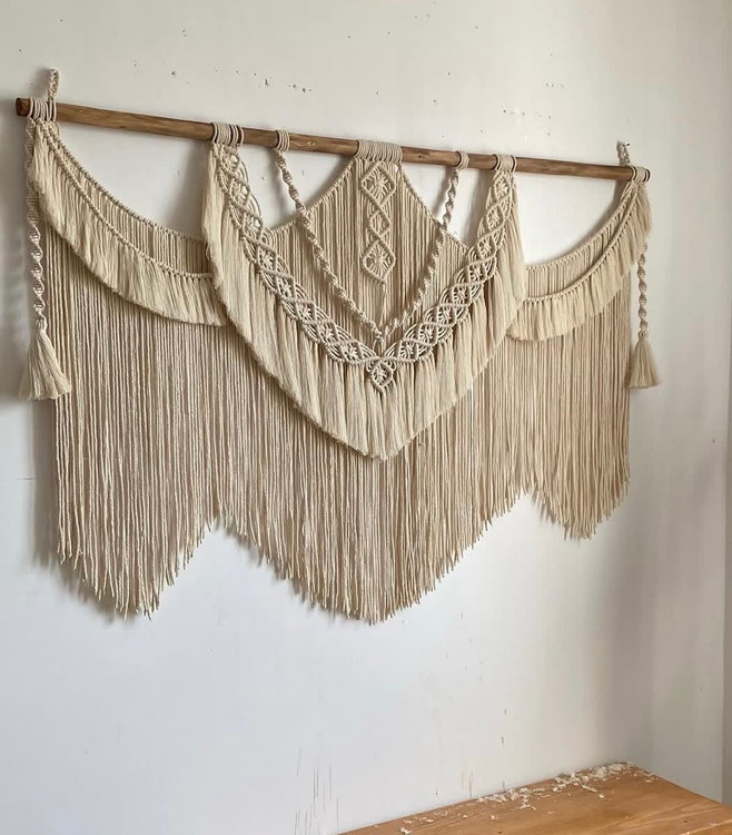 دیوارکوب مکرومه طرح بوهو رنگ شیری ابعاد ۱۸۰ سانت رنگ دلخواه شما ابعاد قایل تغییر کدسفارش۱۹۹