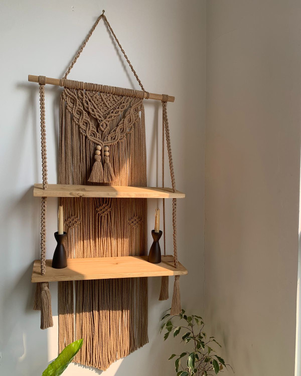 شلف مکرومه دو طبقه رنگ نسکافه ای ابعاد ۷۰ سانت رنگ قابل تغییر کدسفارش۱۴۳