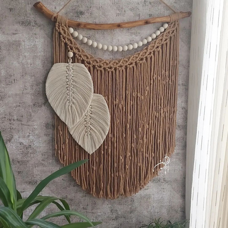 دیوارکوب مکرومه طرح برگ ایعاد ۷۰ سانت رنگ دلخواه شما کد سفارش۱۸۴