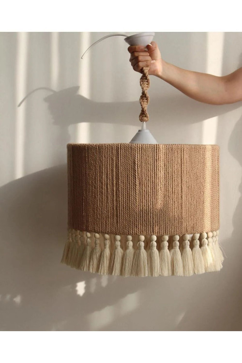لوستر مکرومه منگوله دار رنگ نسکافه ای و شیری مهره دار ابعاد ۴۰ در ۱۵ کد سفارش۳۵۶