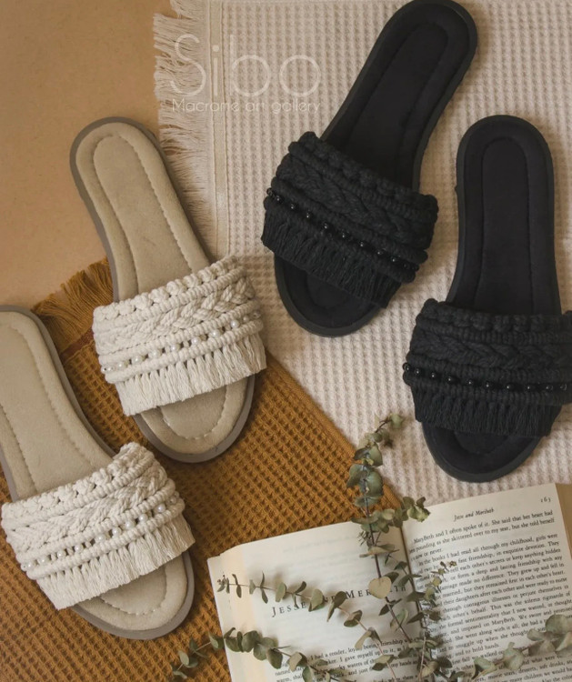 صندل مکرومه مرواریدی طرح بافت رنگ دلخواه شما کد سفارش۱۴۶۵