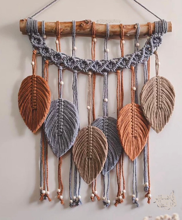 دیوارکوب مکرومه طرح برگ ابعاد ۷۰ رنگ دلخواه شما کد سفارش۲۶۷