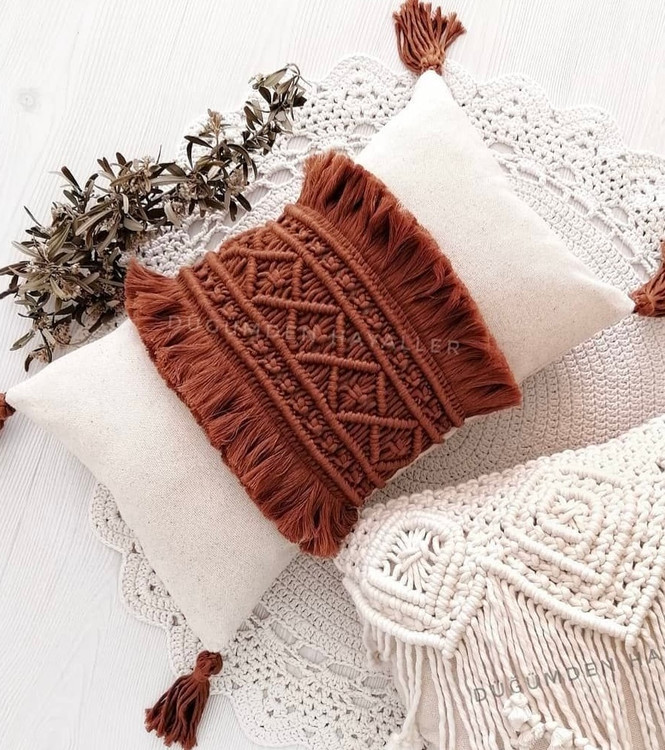 کاور کوسن مکرومه رنگ آجری ابعاد ۳۵در ۳۰ رنگ قابل تغییر کد سفارش۱۵۵
