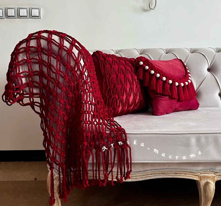 شال مبل مکرومه طرح مینیمال رنگ قابل تغییر ابعاد ۱۵۰ در ۵۰ و قابل تغییر کد سفارش۵۴۵
