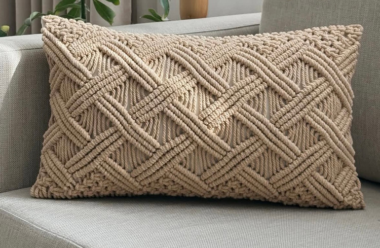 کاور کوسن مکرومه لوزی ابعاد ۳۰ در ۵۰ رنگ قابل تغییر کد سفارش۱۶۵