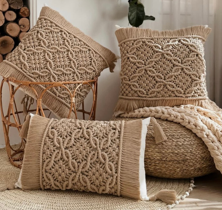 کاور کوسن مکرومه طرح گلبرگ ابعاد ۴۰ در ۴۰ رنگ قابل تغییر کد سفارش۵۷۵