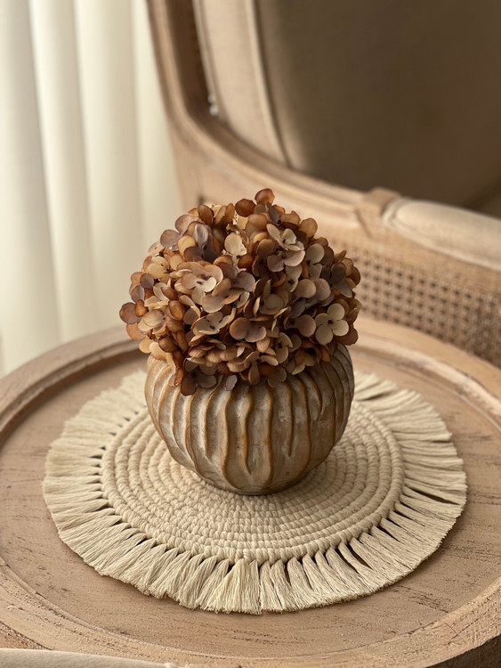 رومیزی گرد مکرومه طرح حلزونی ابعاد ۳۰ رنگ شیری کدسفارش۲۷۸۶