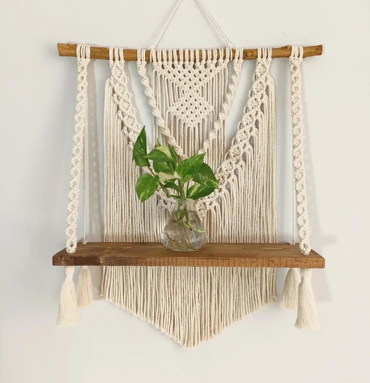 شلف مکرومه طرح لوزی رنگ شیری ابعاد ۷۰ رنگدلخواه شما کپی