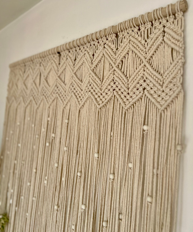 پرده مکرومه طرح لوزی رنگ شیری ابعاد قابل تغییر کد سفارش۲۴ رنگ دلخواه شما کپی