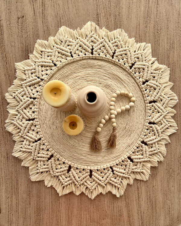 رومیزی مکرومه گرد طرح خورشید ۵۵ سانتی رنگ و طرح به دلخواه شما ابعاد به دلخواه شما