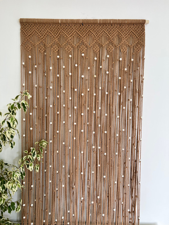 پرده مکرومه طرح لوزی ابعاد قابل تغییررنگنسکافه ای مهره دار ابعاد قابل تغییر کد سفارش۱۷۵