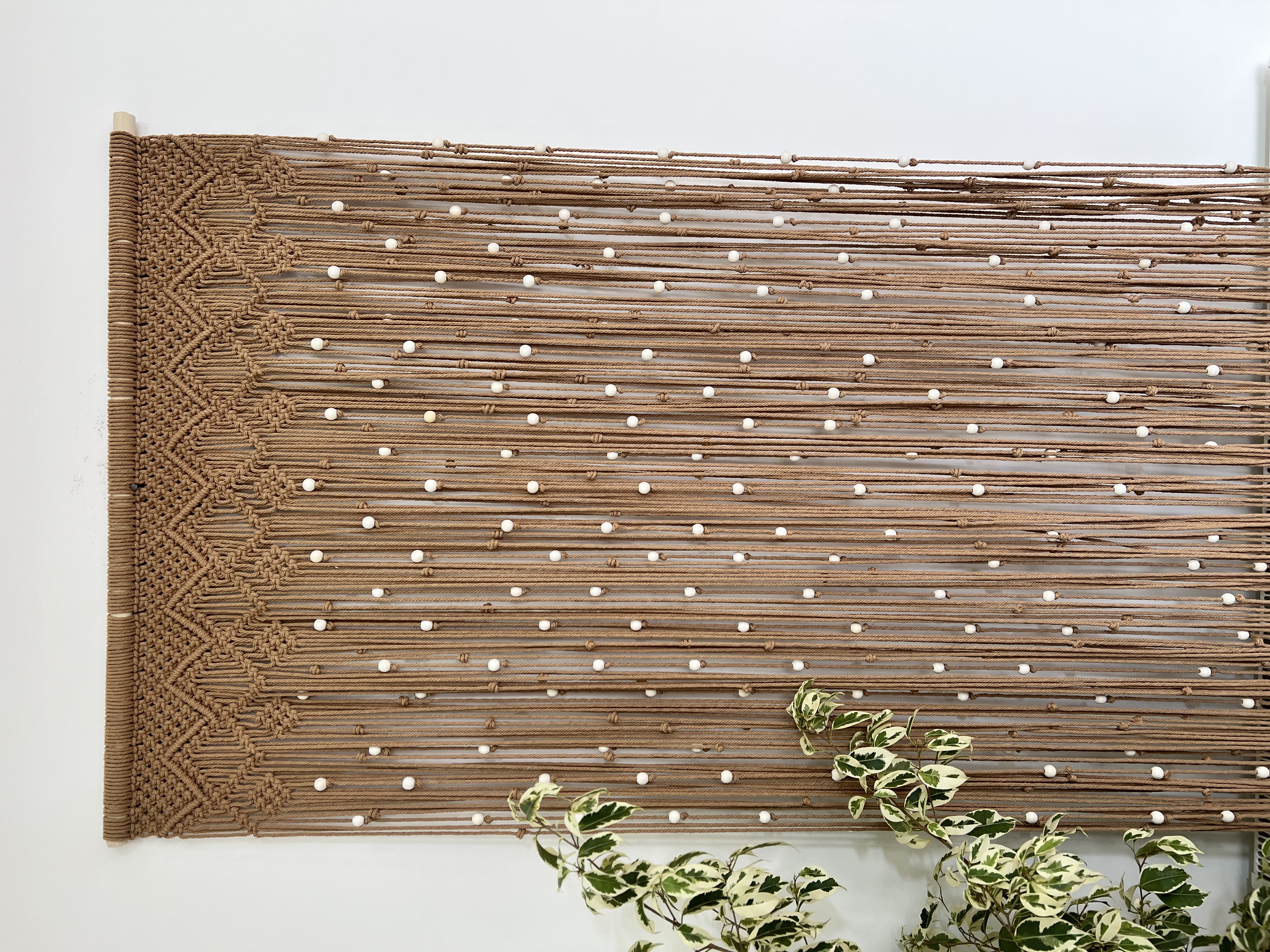 پرده مکرومه طرح لوزی ابعاد قابل تغییررنگنسکافه ای مهره دار ابعاد قابل تغییر کد سفارش۱۷۵