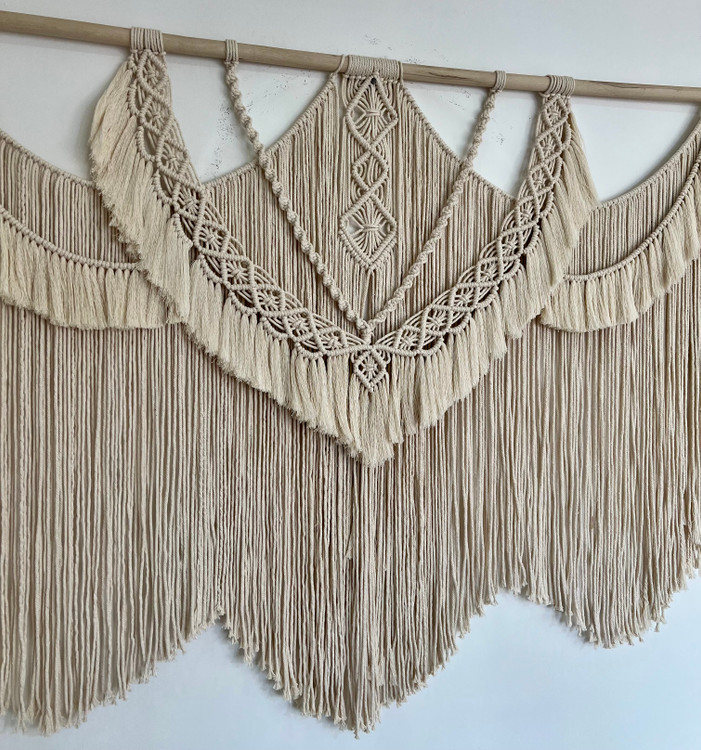دیوارکوب مکرومه طرح بوهو رنگ شیری ابعاد ۱۵۰سانت رنگ دلخواه شما ابعاد قایل تغییر کدسفارش۱۹۱۴۱