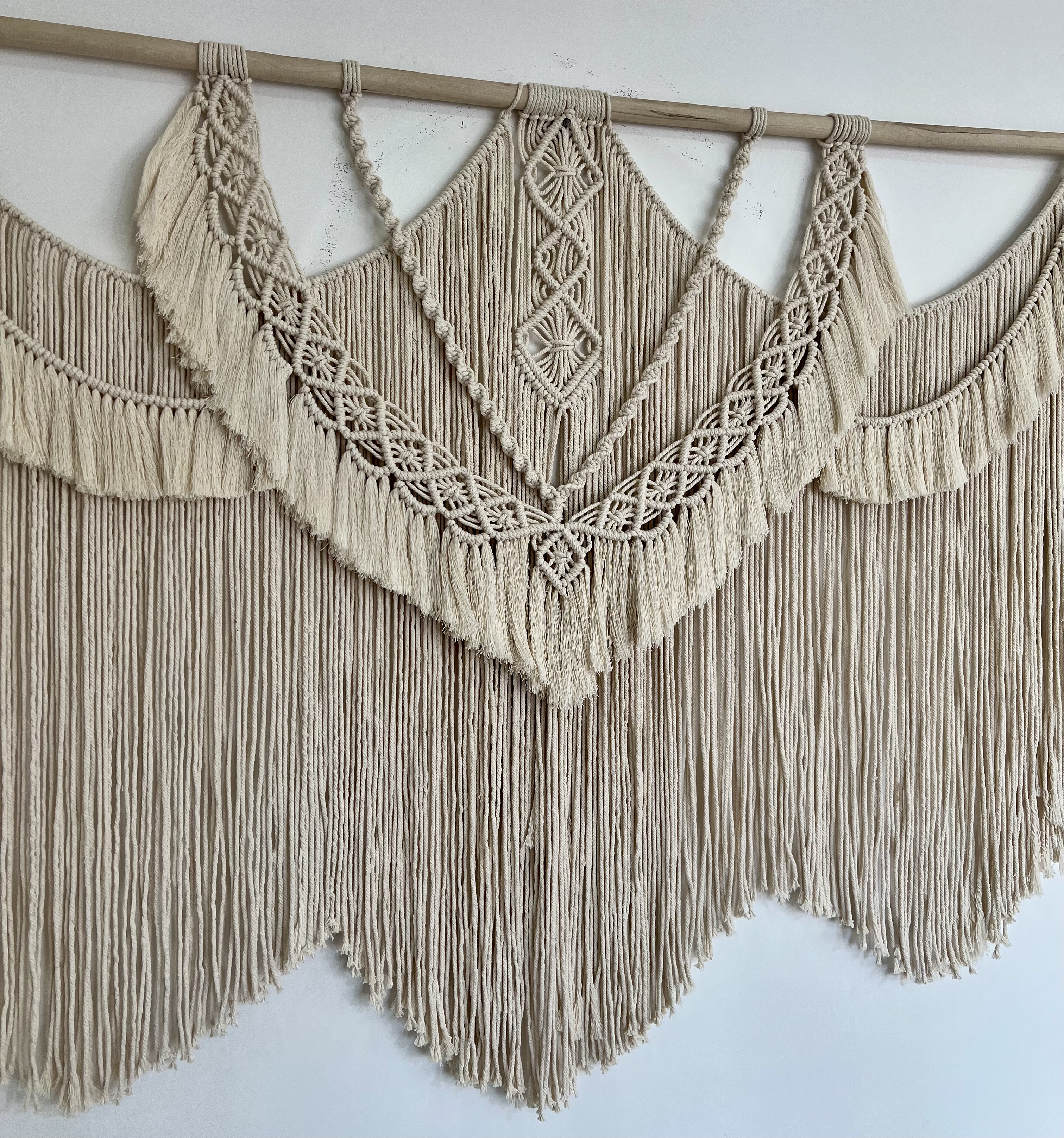دیوارکوب مکرومه طرح بوهو رنگ شیری ابعاد ۱۵۰سانت رنگ دلخواه شما ابعاد قایل تغییر کدسفارش۱۹۱۴۱