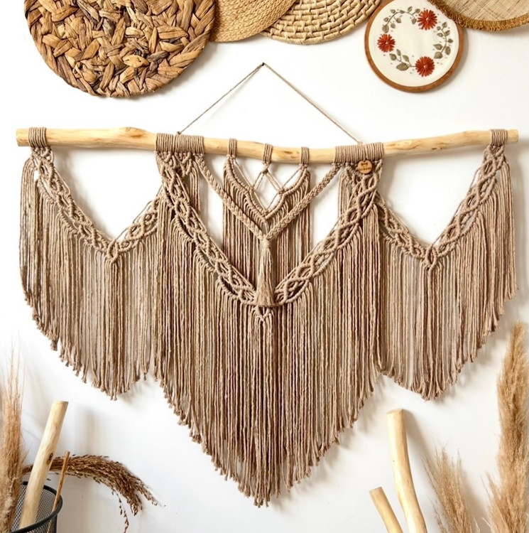 دیوارکوب مکرومه طرح بوهو ابعاد ۱۵۰ سانتی رنگ نسکافه ای رنگ دلخواه شما قابل تغییر کدسفارش۱۹۷