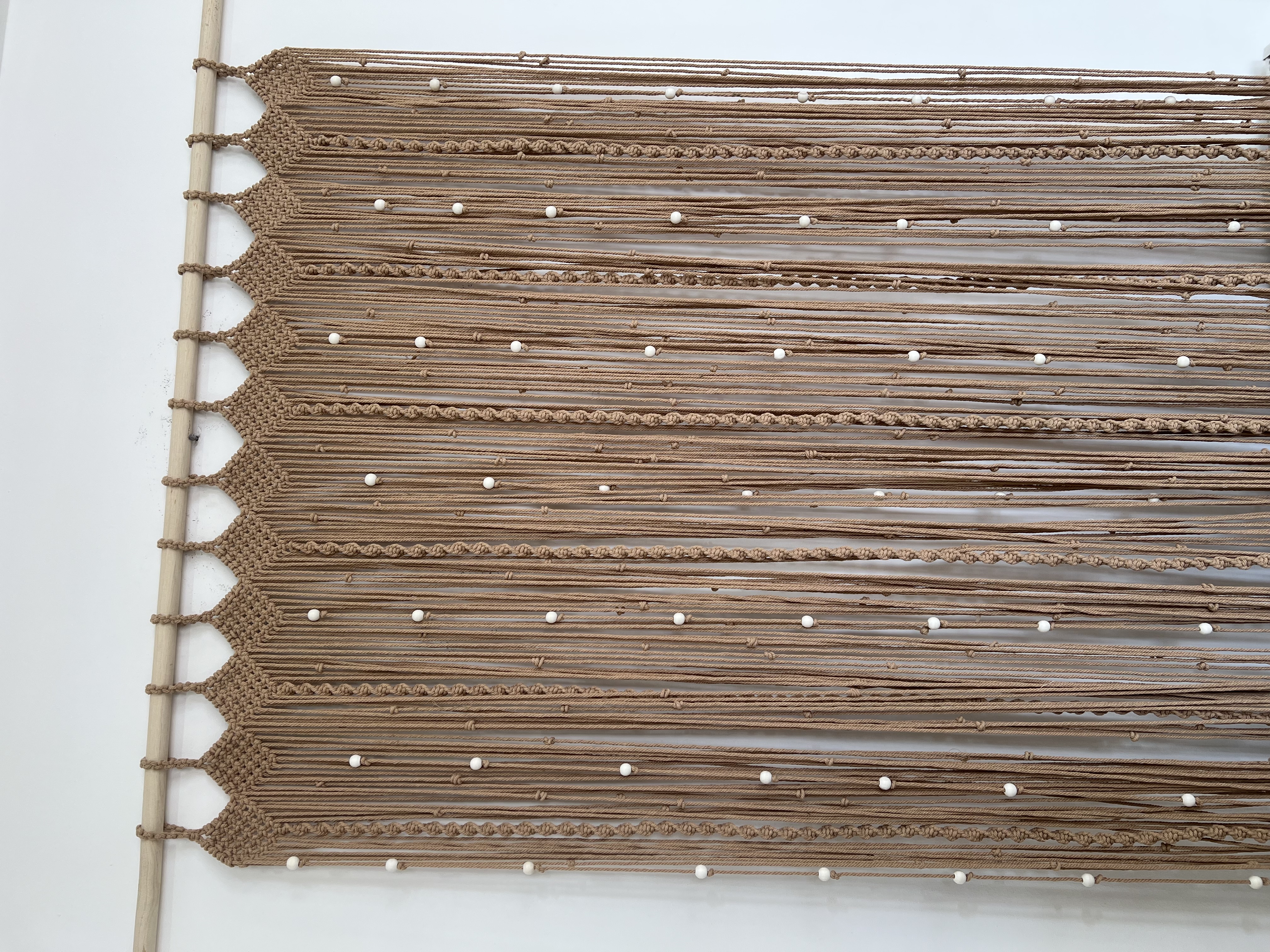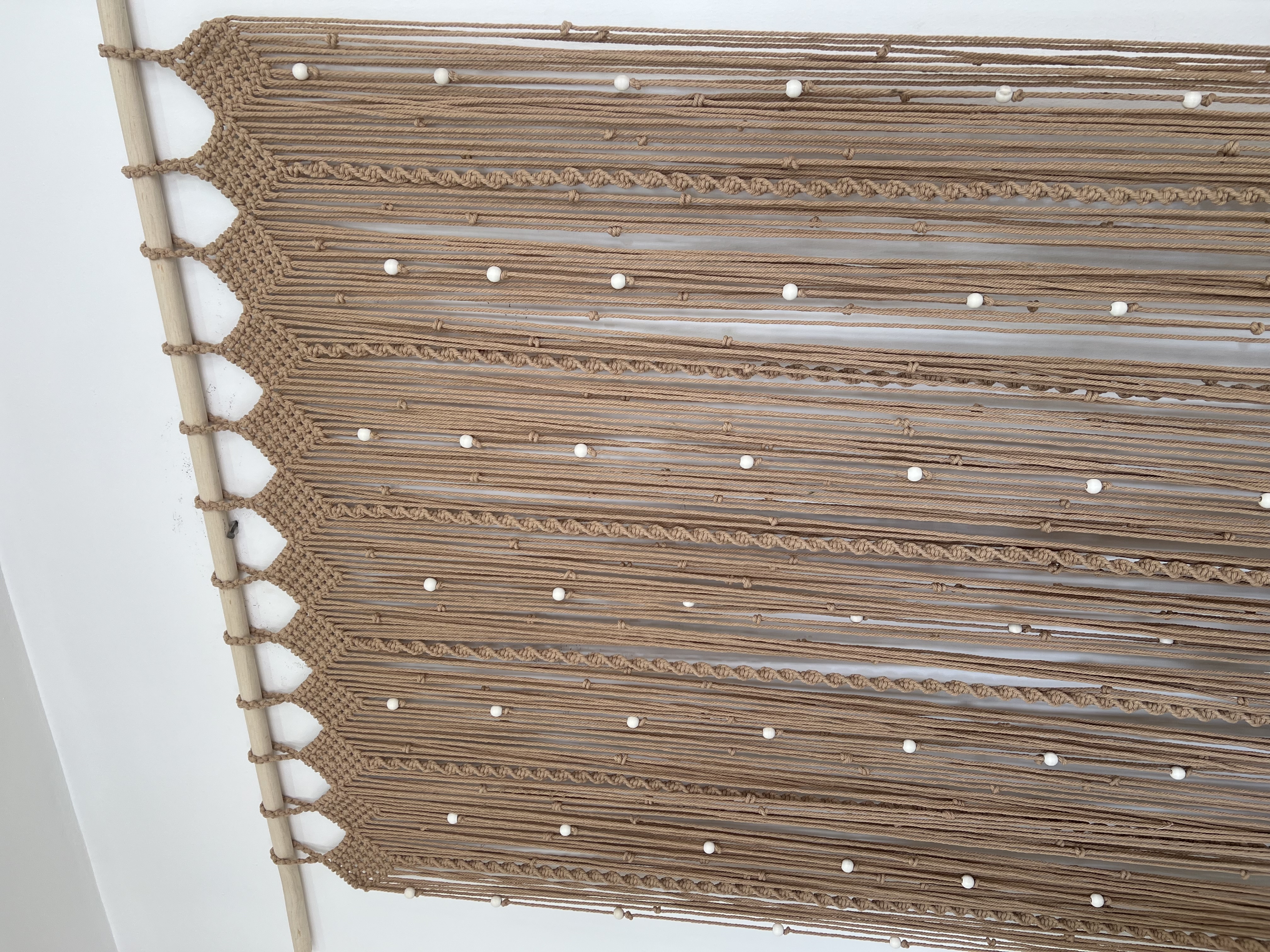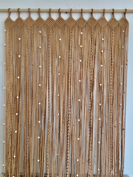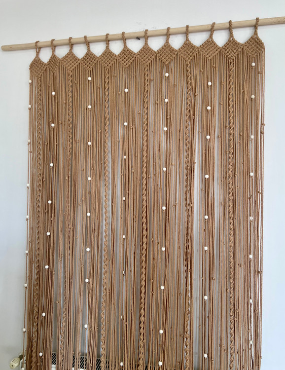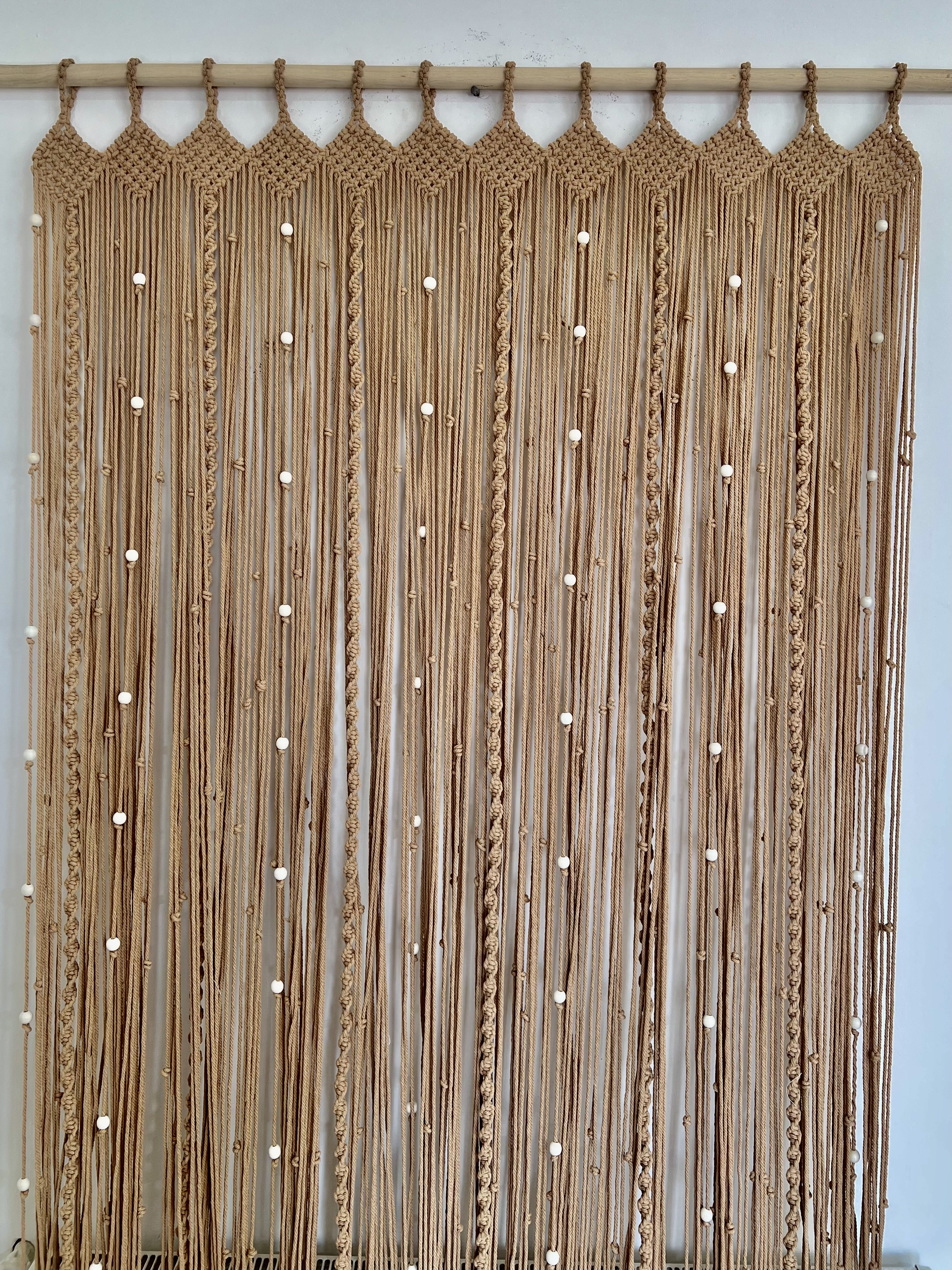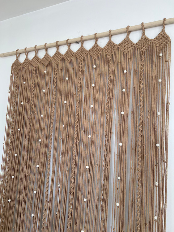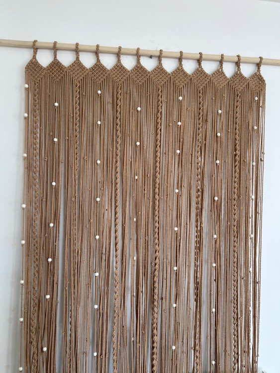 پرده مکرومه طرح پیچ و مهره رنگ نسکافه ای ابعاد قابل تغییر رنگ دلخواه شما کد سفارش۷۶۰
