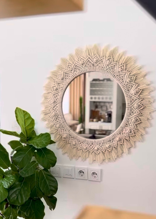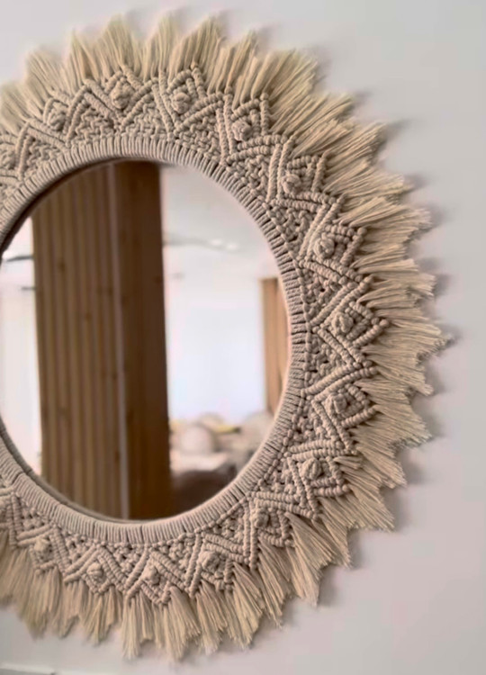 آینه مکرومه طرح خورشید ۶۵ سانتی طرح و رنگ به دلخواه شما با ابعاد مورد نظر شما کد ۱۰۰۸