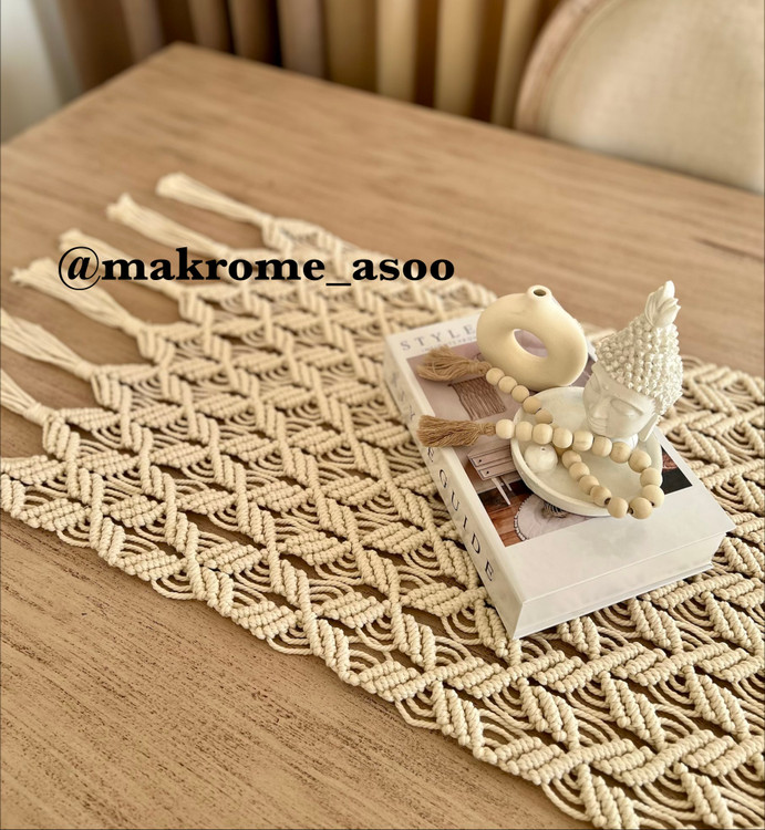 رانر مکرومه طرح گلبرگ رنگ شیری ابعاد قابل تغییر کد سفارش۵۸۲