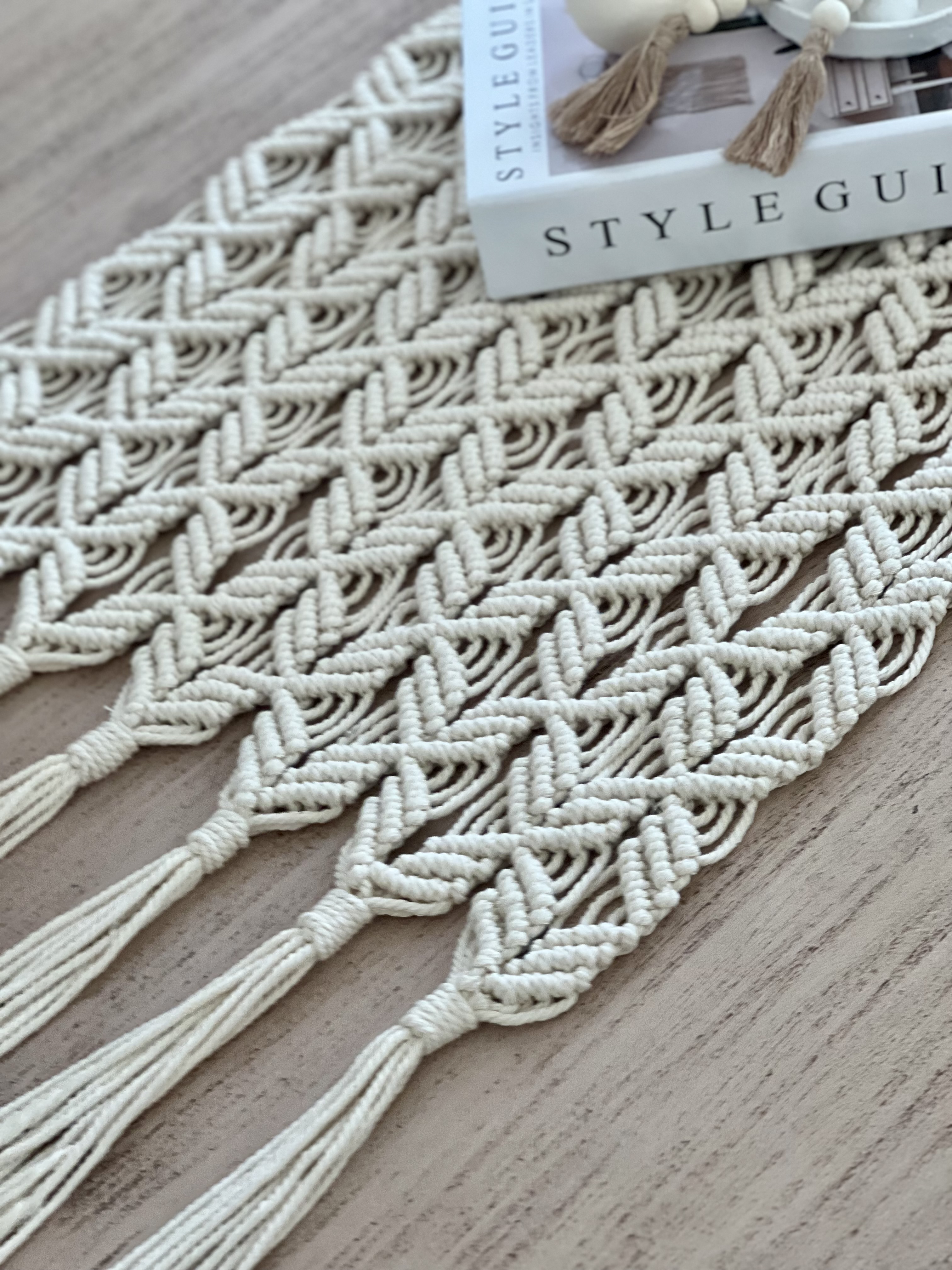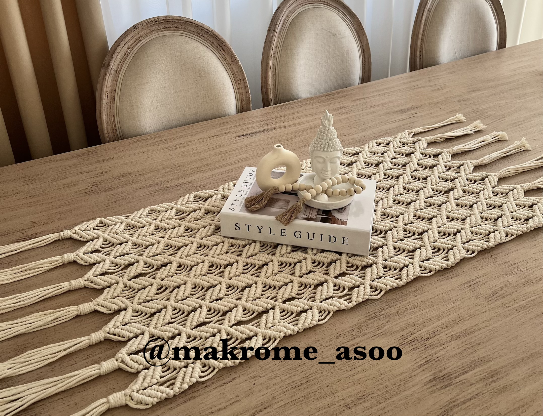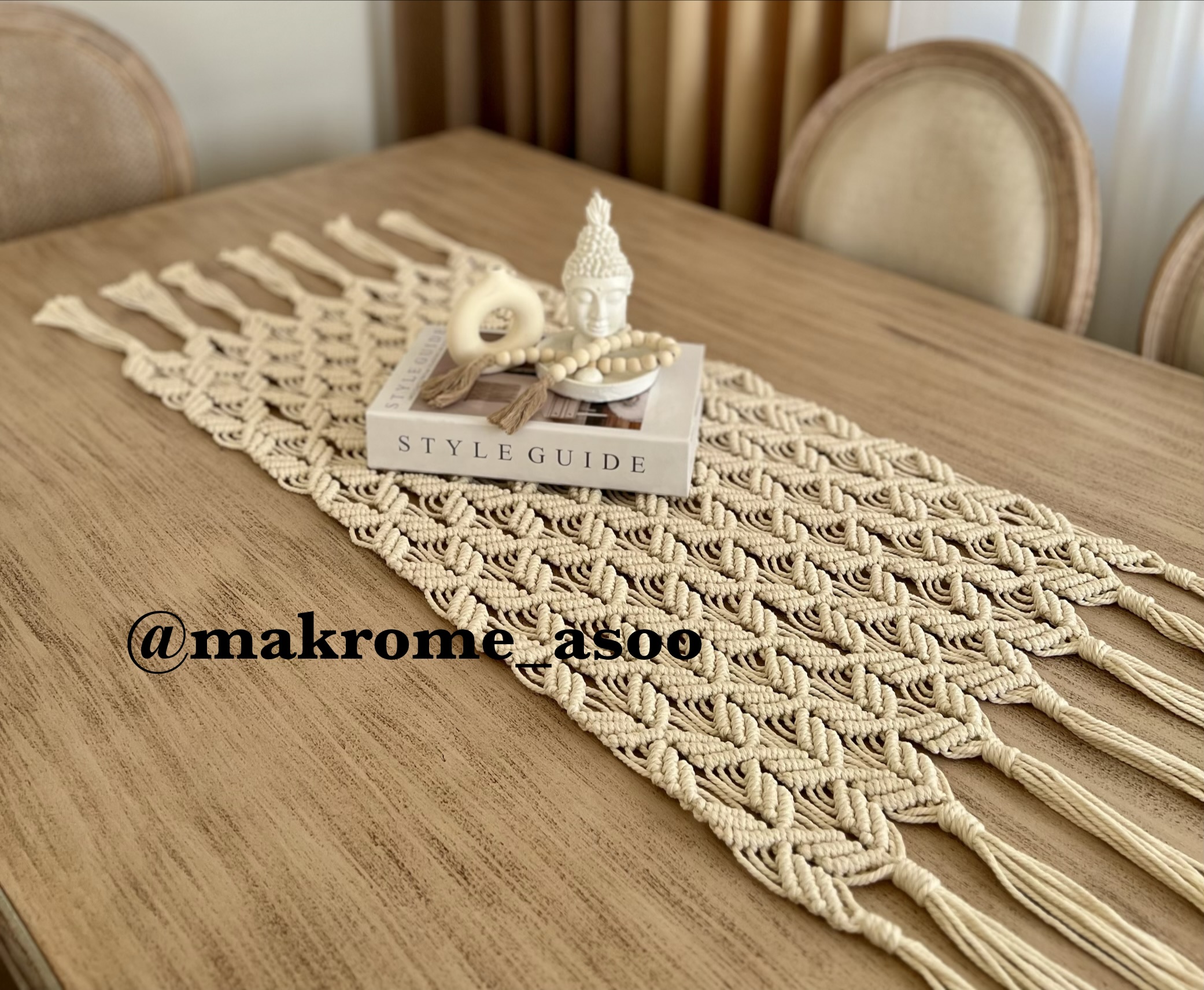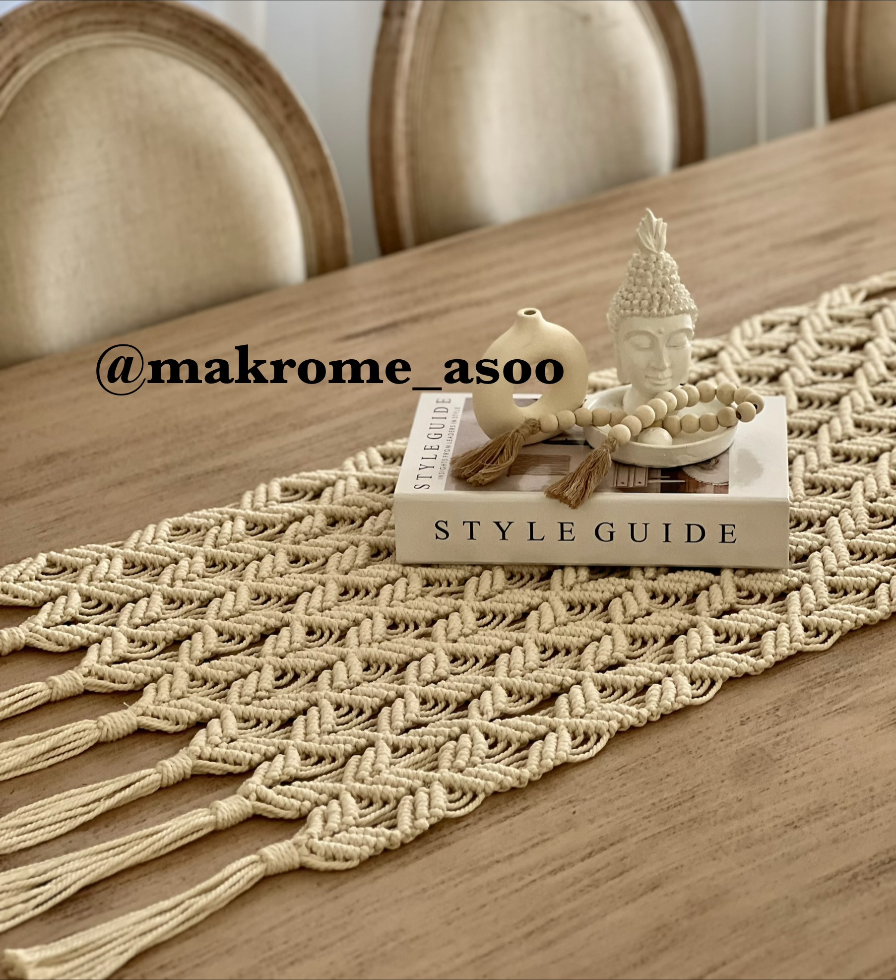 رانر مکرومه طرح گلبرگ رنگ شیری ابعاد قابل تغییر کد سفارش۵۸۲